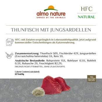 Legendäre Almo Nature-Qualität – jetzt noch transparenter: HFC steht für die zertifizierte Herkunft der Inhaltsstoffe, die ursprünglich für die menschliche Nahrungskette bestimmt waren. Die geringe Anzahl an Inhaltsstoffen sorgt für ein verständliches Etikett.