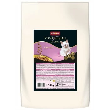 Animonda Vom Feinsten Kitten steht für ausgewogene, gesunde Ernährung auf höchstem Niveau. Die sorgfältige Auswahl und die Qualität der Rohstoffe, hohe Bekömmlichkeit und optimale Verdaulichkeit sind die ideale Basis für Wohlbefinden und Agilität Ihrer Katze. Spezielle Vitamin-Wirkstoffkombinationen stärken die natürlichen Abwehrkräfte, aufeinander abgestimmte Mineralstoffe sind für ein gesundes Wachstum wichtig. Hochverdauliche, Proteine und Fructooligosaccharide schonen den noch sensiblen Magen und Darm und fördern eine optimale Verdauung der Nährstoffe. Omega 3- und Omega 6-Fettsäuren sorgen für ein gesundes Haarkleid.