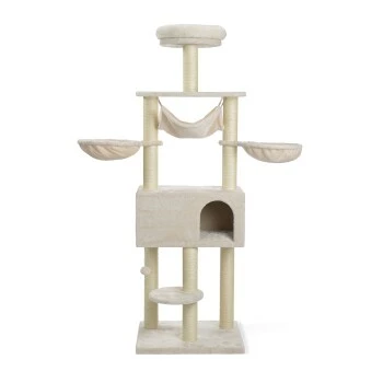 Das Sisal Material an den Pfosten bietet genug Kratzmöglichkeiten für deinen Liebling. Zudem besitzt der Baum Spielzeug zur Befriedigung der Spiellust deiner Samtpfote.