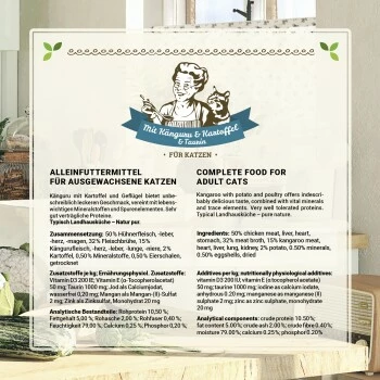 Wir empfehlen Känguru mit Geflügel und Kartoffel besonders für magensensible Katzen, aber natürlich auch für alle ausgewachsene normal aktive Schnurrer.