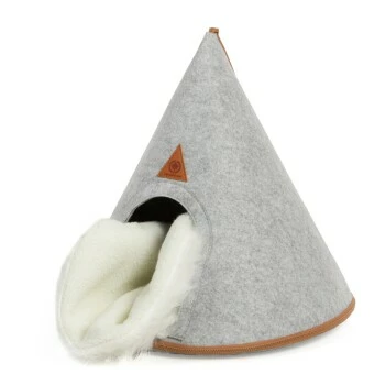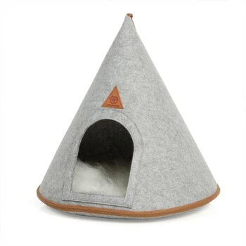 Das Katzenzelt besteht aus hochwertigem Filz und ist für einen praktischen und schnellen Aufbau mit Reißverschlüssen versehen. Der gepolsterte Boden bietet einen idealen Schlafkomfort und wird ergänzt durch das beigefügte weiße Kuschelkissen, welches auch separat genutzt werden kann.