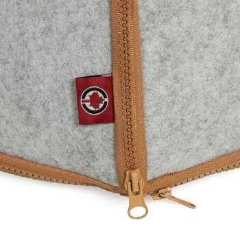 Die formfeste Filzwand des Filzzelt wird mit einem Reißverschluss zusammen gesetzt und mit dem Kissen mit einem weiteren Reißverschluss rundum verbunden. Das Zelt kann im abgebauten Zustand leicht zusammengerollt und einfach in dem beigefügtem Beutel verstaut werden.
