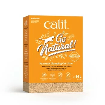 Die klumpende Catit Go Natural™ Katzenstreu aus Erbsenhülsen wird aus den äußeren Fasern von Erbsen hergestellt.