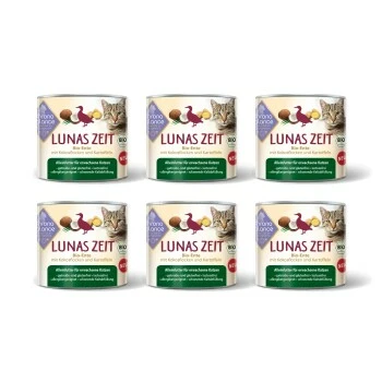 Für Samtpfoten mit höchsten Ansprüchen: „Lunas Zeit – Bio-Ente“,fein abgeschmeckt für Ihre Katze. Entenfleisch ist besonders protein- und mineralstoffreich. Lachsöl liefert zudem wertvolle Omega-Fettsäuren. Ihre Katze wird diese Delikatesse lieben. Nachhaltig produziert auch mit Bio-Zutaten in Lebensmittelqualität. Immer das richtige Futter zu jeder Zeit!