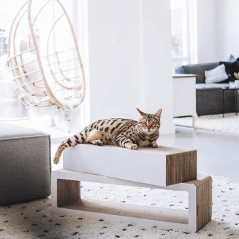 Das STRETCH Kratzmöbel aus Pappkarton ist ein Must-have für alle Freunde eines geschmackvollen Interieurs, die auch ihrer Katze einen komfortablen Schlafplatz bieten möchten. Außerdem ist dieses stilvolle Kratzmöbel aus Pappkarton ideal, wenn deine Katze kratzen und spielen will. Auf dem Markt sind jede Menge Kratzbäume und -möbel zu finden, aber wie viele davon erfüllen deine Ansprüche an gutes Design? Dieses geschmackvolle Kratzmöbel vereint eine zeitlose Form mit trendigem Design in neutralen Farben, was beweist, dass Katzenmöbel die Attraktivität deines Interieurs nicht im Geringsten beeinträchtigen müssen. Darüber hinaus stellt es eine moderne Alternative zu jedem traditionellen Kratzbaum dar. Dieses Kratzmöbel wird mit Sicherheit zum neuen Lieblingsplatz deiner Katze!