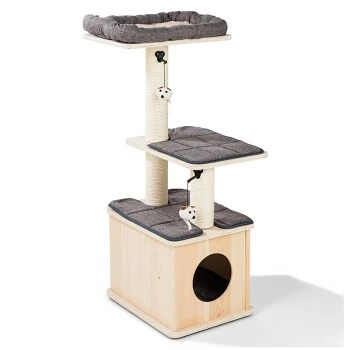 Der Kratzbaum Oslo ist ein qualitativ hochwertiger, funktioneller Kratzbaum im skandinavischen Stil. Die unbearbeiteten Tannenholzelemente bieten in Kombination mit dem luxuriös verarbeiteten Stoff ein außergewöhnliches Design und optimalen Komfort für die Katze. Die zwei Kissen und das Bettchen sind mit Klettverschlüssen befestigt und waschbar. So behält das Möbelstück seine Ausstrahlung und bietet der Katze immer wieder einen sauberen Rückzugsort. Der Kratzbaum umfasst eine tiefe Höhle mit Kuschelkissen und zwei Liegeflächen. Die Stämme sind mit hochwertigem Sisal versehen. An zwei Stellen wurde eine Spielmaus befestigt, die noch mehr Spielspaß garantiert und die Katze zum Kratzen anregt. Der Kratzbaum Oslo ist eine Bereicherung sowohl für das Interieur als auch für die Katze!
