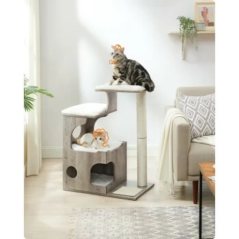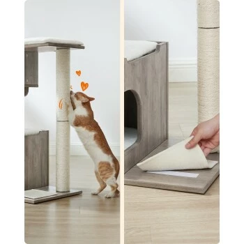 Einfach & stabil: Dank gekennzeichneter Teile und klarer Anleitung können Sie diesen Kratzbaum schnell zusammenbauen; Dieser Kratzbaum verfügt über ein starkes Fundament sowie einen Kippschutz, damit Ihr süßes Energiebündel darauf wild herumspringen kann