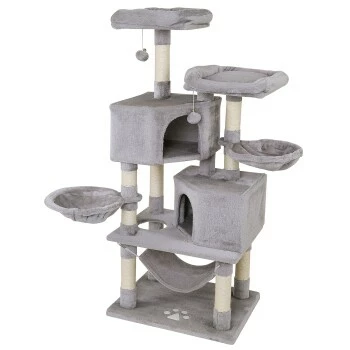 - IDEALES SPIEL- UND RUHEPARADIES. Die vortreffliche Ausstattung dieses Katzenbaumes mit 2 Höhlen und Plüschbällen mit Glocken befriedigt den Spieltrieb Ihrer Katze. Die gemütlichen Liegebetten, die Liegemulden und die bequeme Hängematte unterstützen zusätzlich die benötigten Ruhephasen und auch das beliebte Beobachten kommt nicht zu kurz. Die perfekte Balance zwischen Spielspaß und Rückzugsmöglichkeiten.