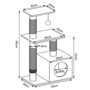 - MAßE UND FARBEN. Der langlebige Kletterbaum misst 50x30x85 cm und ist in den Farben Beige, Braun, Hellgrau und Dunkelgrau erhältlich