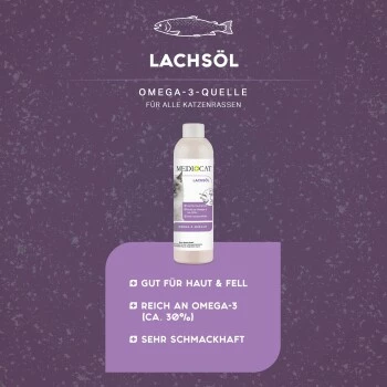 Unser rotes Lachsöl ist reich an Omega-3-Fettsäuren und liefert in Kombination mit Barfen oder als Ergänzung zum Trocken- und Nassfutter Nährstoffe, die dein Vierbeiner benötigt. Medicat rotes Lachsöl ist für alle Altersklassen geeignet.