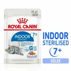 Um den individuellen Vorlieben jeder Katze gerecht zu werden, ist ROYAL CANIN INDOOR 7+ Sterilised Nassfutter als Stückchen in Soße oder als Gelee erhältlich. Ergänzt wird das Nassfutter für Wohnungskatzen durch die passende Trockennahrung INDOOR 7+.