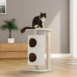Das Besondere an dieser Katzenhöhle sind nicht nur die beiden sisalbespannten Kratzflächen (je B13 x H33 cm), sondern auch die Möglichkeit die Höhle zusammen zu klappen. Das ermöglicht einen einfachen, platzsparenden Transport. Innen ist die Liegefläche mit einer weichen Plüschdecke ausgestattet und lädt zum Verstecken und Schlafen ein.