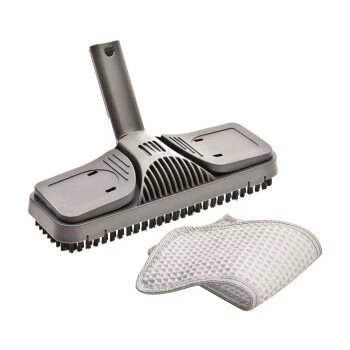 Im Lieferumfang enthalten: Dampfbodendüse mit Drehgelenk und Reinigungstuch, Fensterdüse, Schaber, Punktstrahldüse, Zubehöradapter, Rundbürsten (1x groß, 1x klein mit Messingborsten, 1x klein mit Hartborsten), 3 Verlängerungsrohre inklusive Kabelhalterung.
